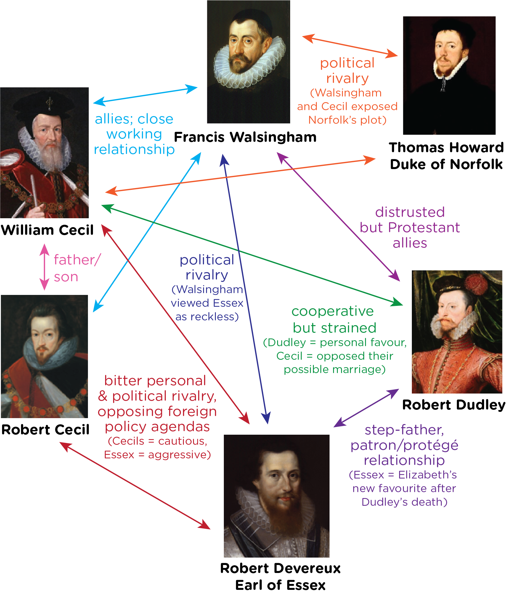 - - Factions, allies, and rivalries in the Privy Council