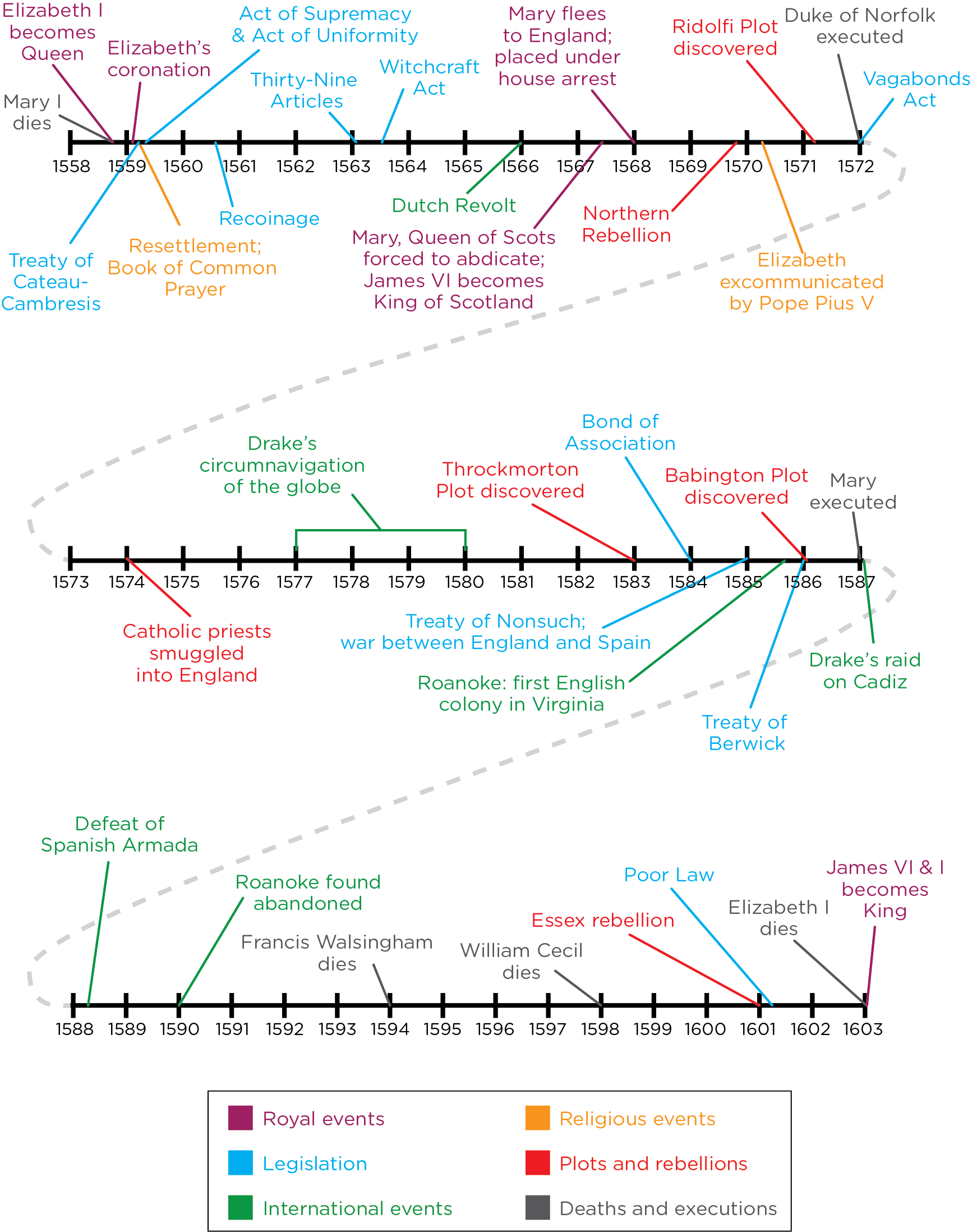 Timeline of key events in the Elizabethan era