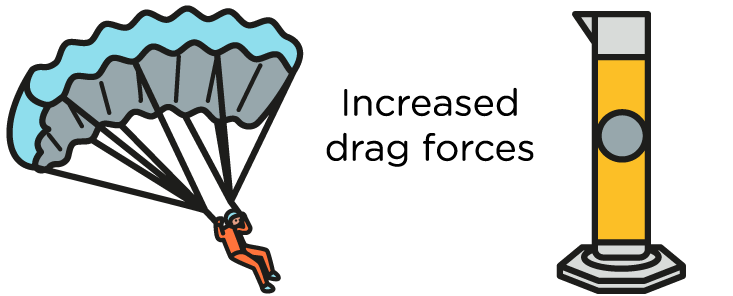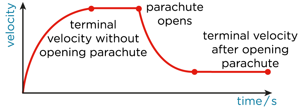 • When the parachutist opens the parachute, the increase in surface area causes a sudden increase in air resistance and decelerates.