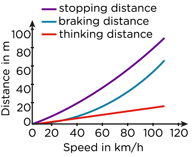 • The relationship between speed and stopping distance can be inferred from graphed data.