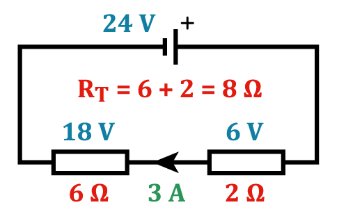 • The total resistance, in Ω of two components connected in series is given as \(V_\text{total}=R_1+R_2\). Connecting resistors in series will increase the total resistance and reduce the current through them.