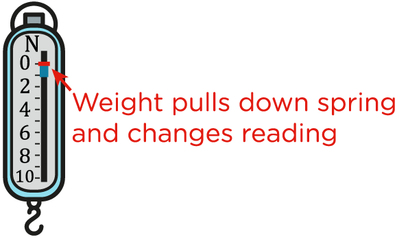 • The weight an object experiences depends on its mass and gravitational field strength, given by \(\text{weight}=\text{mass}\times\text{gravitational field strength}\) or \(W = mg\)