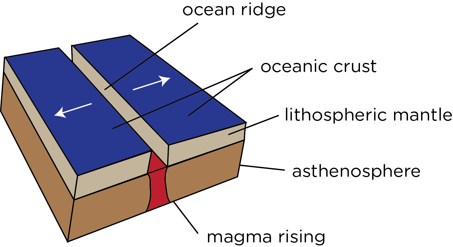 • As plates move apart, magma rises from the mantle to fill the gap.