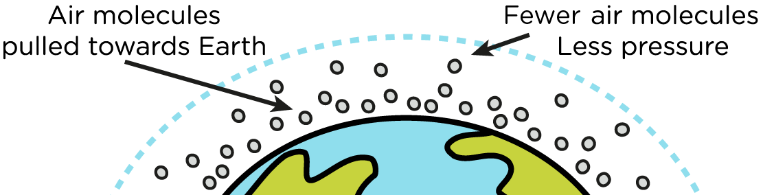 • This means collisions between air molecules and surfaces happen less frequently, so the force exerted by the molecules is smaller.